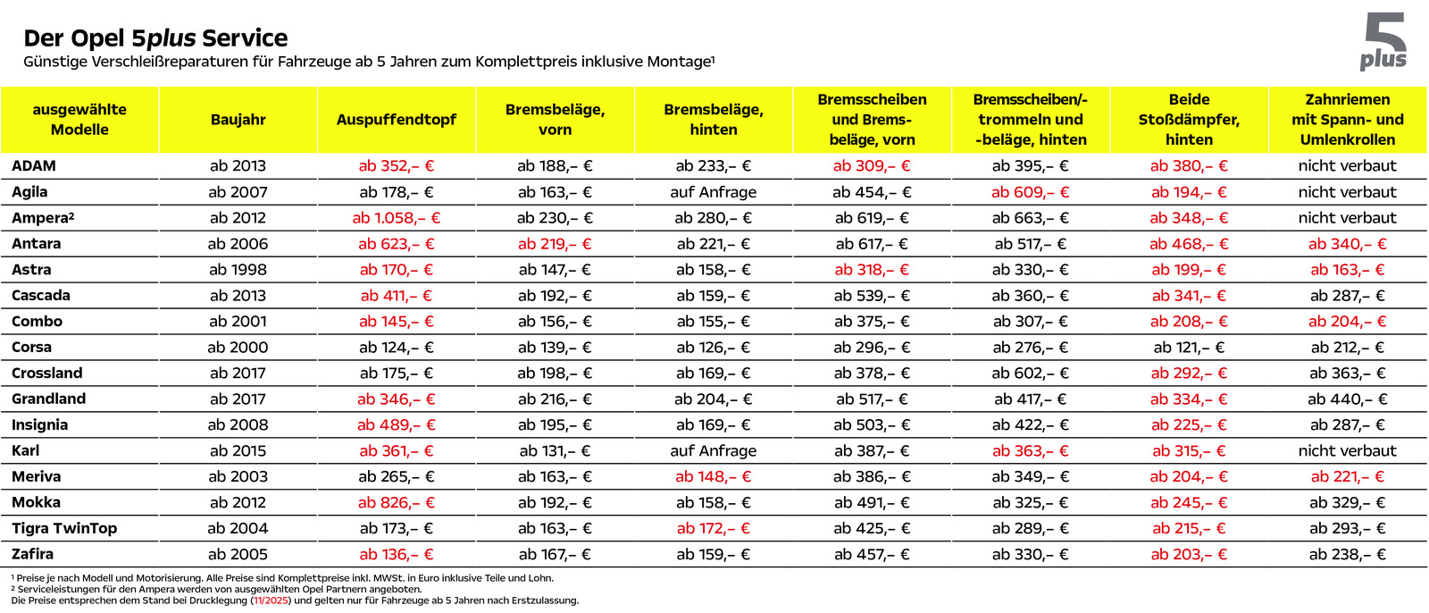- Service- und Reparaturleistungen mit modernster Technik an Opelmodellen